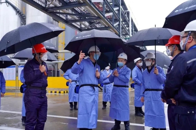 2月8-10日,李凡榮一行赴中化藍天調研,先后考察中化藍天上虞基地、浙化院、浙江新能源和中化藍天總部,深入生產車間、工程建設現(xiàn)場、重點實驗室、營銷中心等生產、研發(fā)和市場一線,了解生產運營、工藝技術、安全管理、研發(fā)創(chuàng)新、市場開發(fā)等情況,并看望慰問一線干部員工。