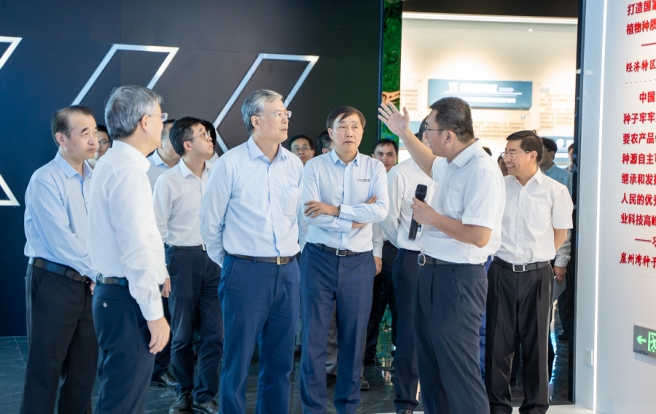 在崖州灣種子實(shí)驗(yàn)室,李凡榮一行沿著習(xí)近平總書記2022年南繁考察足跡,重溫習(xí)近平總書記重要講話并與種業(yè)研發(fā)骨干座談交流。